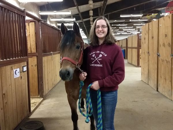 I have been competing in equitation shows since 2011 in the state of Maine- Showmanship, Halter, Hunter Under Saddle, Western Horsemanship, Versatility Trail, Bareback Equitation, I hold a Bronze medal in dressage from the Maine State Dressage Society, and as of recently, I've been competing in Barrel races and other speed events like Skijor. In Iowa I was team captain of my school's Intercollegiate Horse Show Association Western and English Hunt Seat teams where we competed against other college teams in Wisconsin, Minnesota, and North Dakota. At Ellsworth Community College the management program was a very hands on based training. We trained horses of all ages, starting with a weanling and progressing to yearlings, two-year-olds, and advancing and refining the riding skills of older (5 year+) horses. We taught basic ground manners, lunging, desensitization, saddling, backing, showmanship maneuvers, light trail obstacles, body manipulation under saddle (lateral movement), and gait responsiveness.